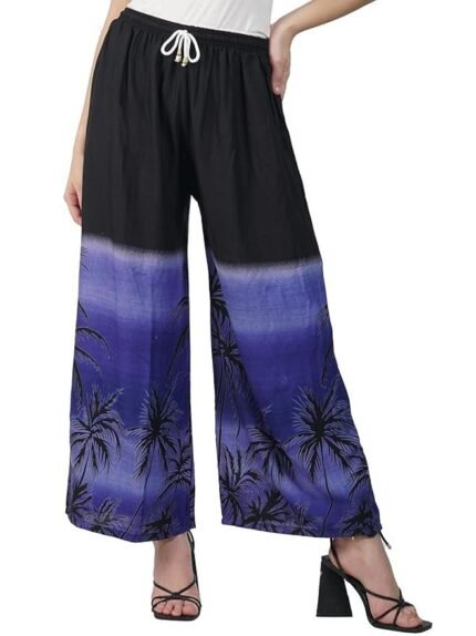 Reyon Printed Loose Fit Flared Wide Leg Palazzo’s Pants for Women Multicolors